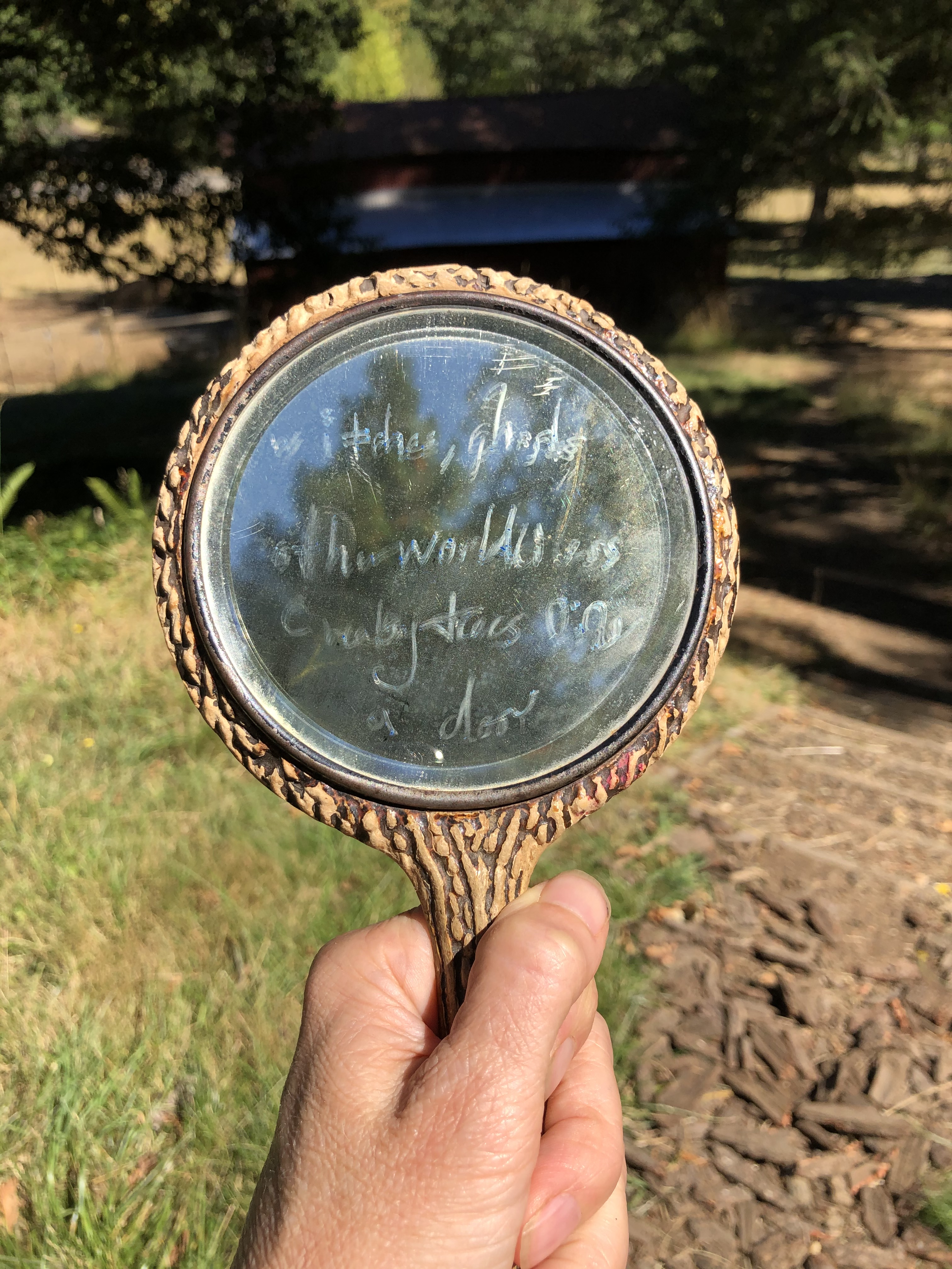The premise of the R.A.W. Mirror Shots exchange for Explorations of Now is a play on Wild-West sharpshooter Annie Oakley’s famous mirror-shot trick, in which she would take aim at a target behind her back using a handheld mirror. Standing in the moment, in the ashes of the past and present looking forward and backward at the same time, this trick aims to seek paths toward making better futures for all earthly lives. Through recorded voices, handwritten messages, and some still and video images, the R.A.W. made reflections in the here-and-now of the workshops at Kultivator as they unfolded, each over several days. See the Kultivator/Explorations of Now site and this wonderful video document for more on the workshops and the project: