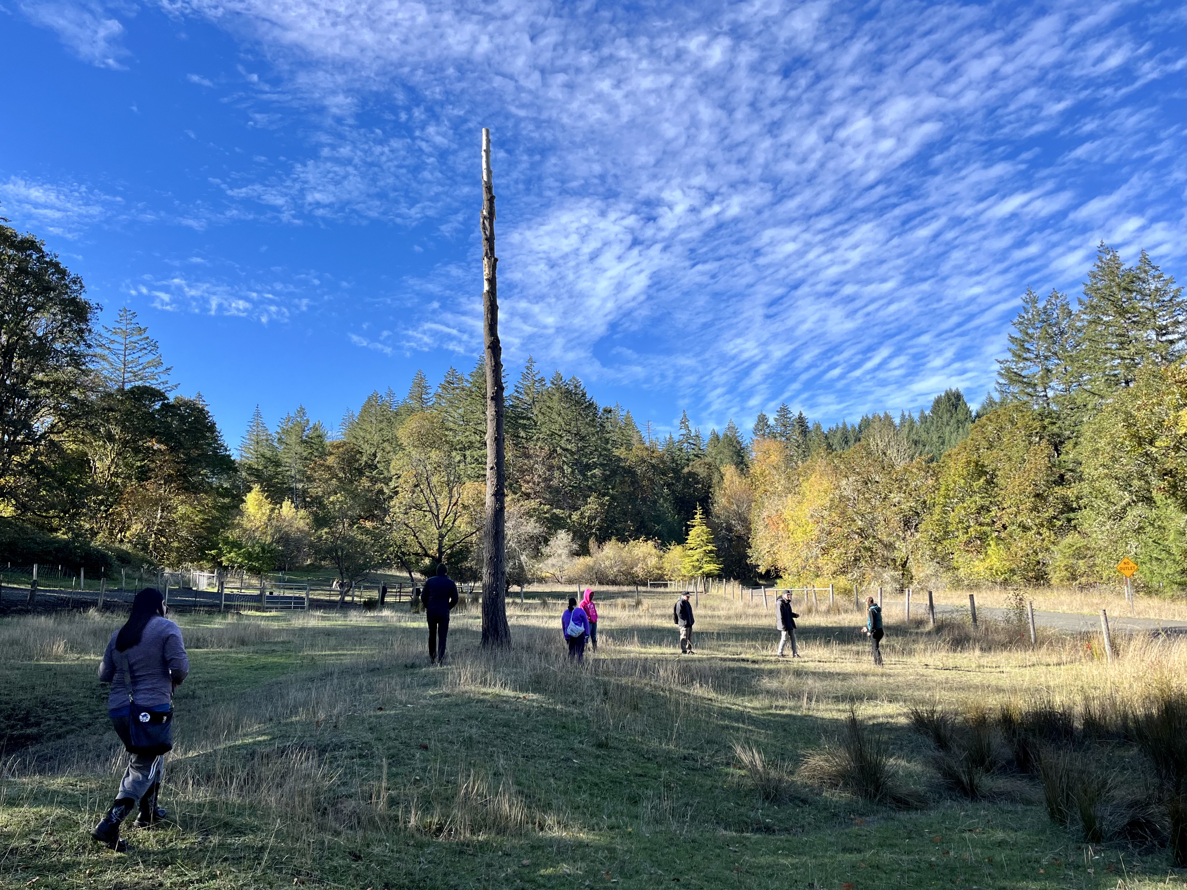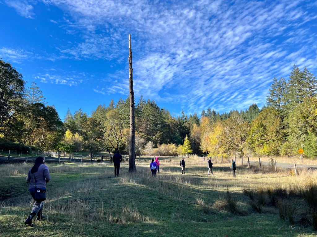 On October 24, 2024, the R.A.W. pasture studio welcomed artists from Living Studios for a visit as an extension of the Evaporation Day installation. Artists wandered in and around the pondbottom and watched and listened to the presences of the donkeys, sheep, and Ghost Tree in different ways.